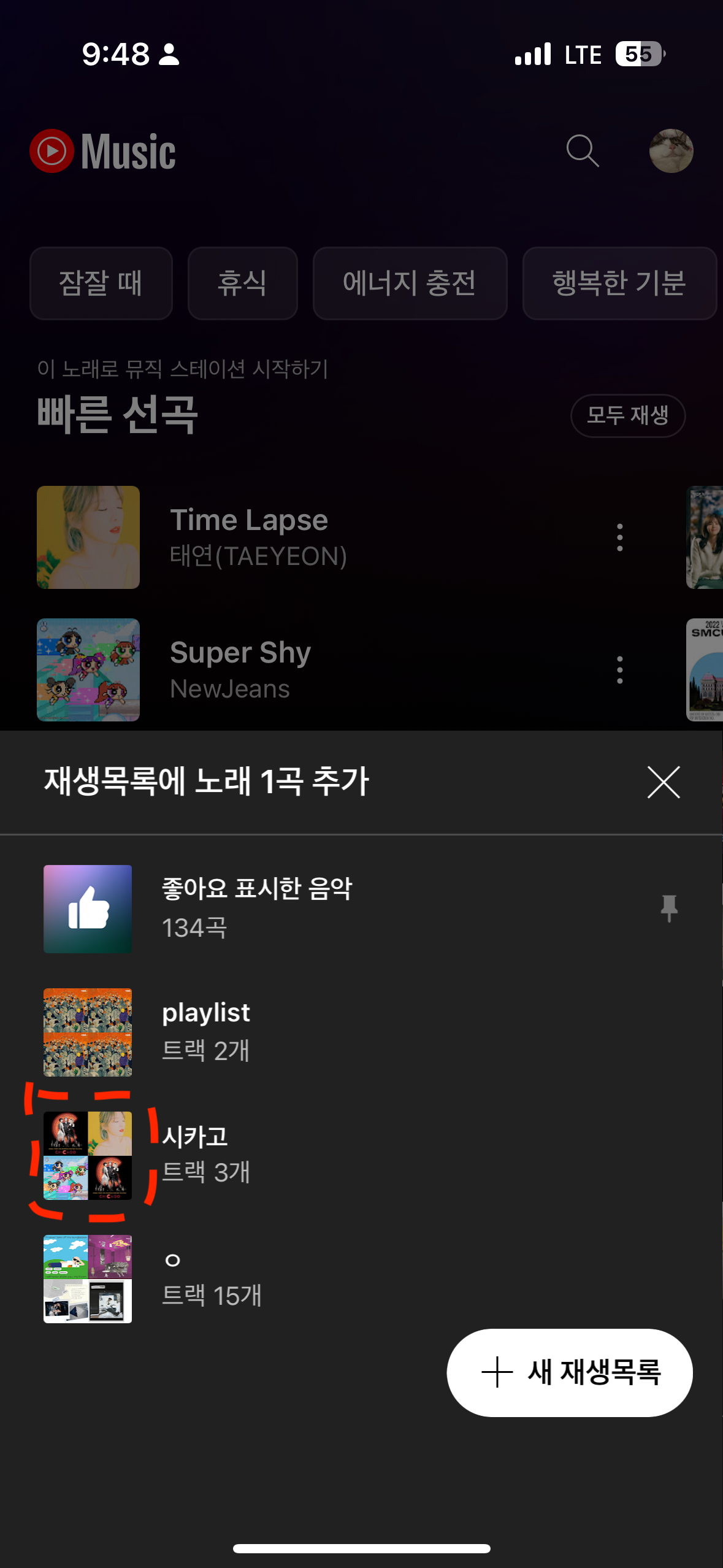 이후 변경 버튼을 통해서만 재생 목록 변경이 가능하다.
