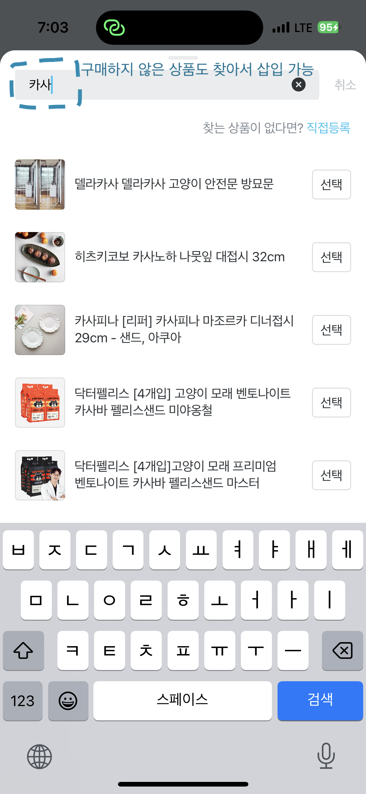 - 오늘의 집에서 구매하지 않은 물건도 <직접 등록> 버튼을 통해 등록이 가능하도록 설계
