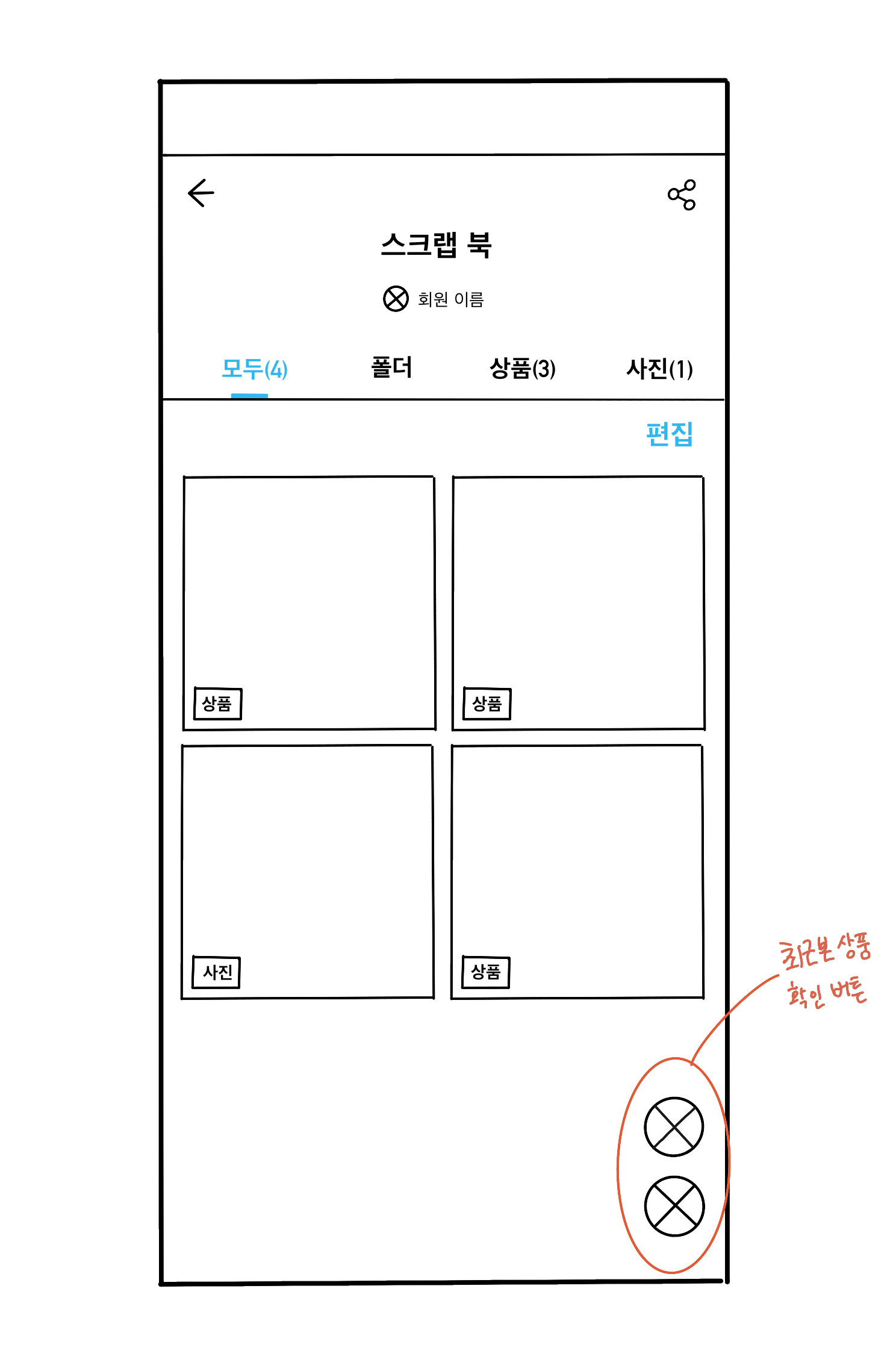 - 비교적 view point가 적은 스크랩북 화면에서 방금 본 상품을 확인할 수 있도록 설계