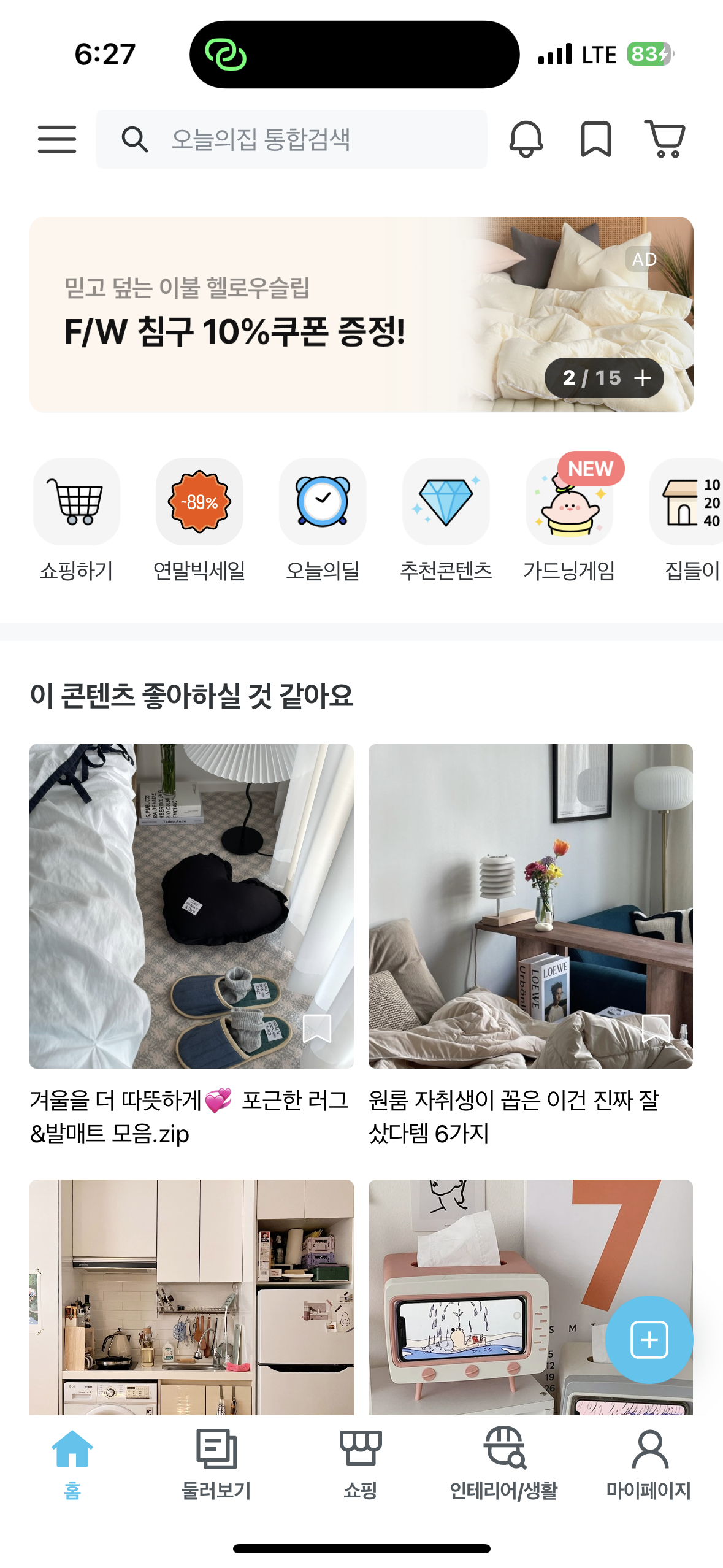 - 오늘의 집은 이미 메인 화면에서 많은 정보를 제공하고 있음