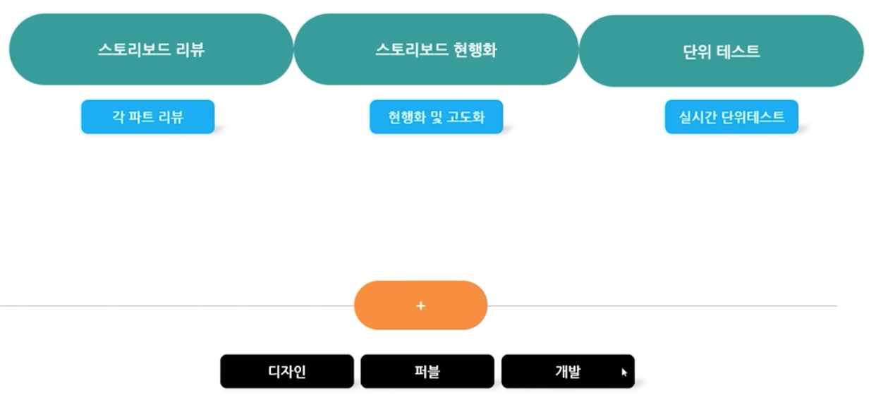 - 개발 리뷰: UI에 대해서, 여러 가지 정책적인 부분들에 대해서 개발자들과 디자이너들과 리뷰를 통해 상의하고 확정해 간다.