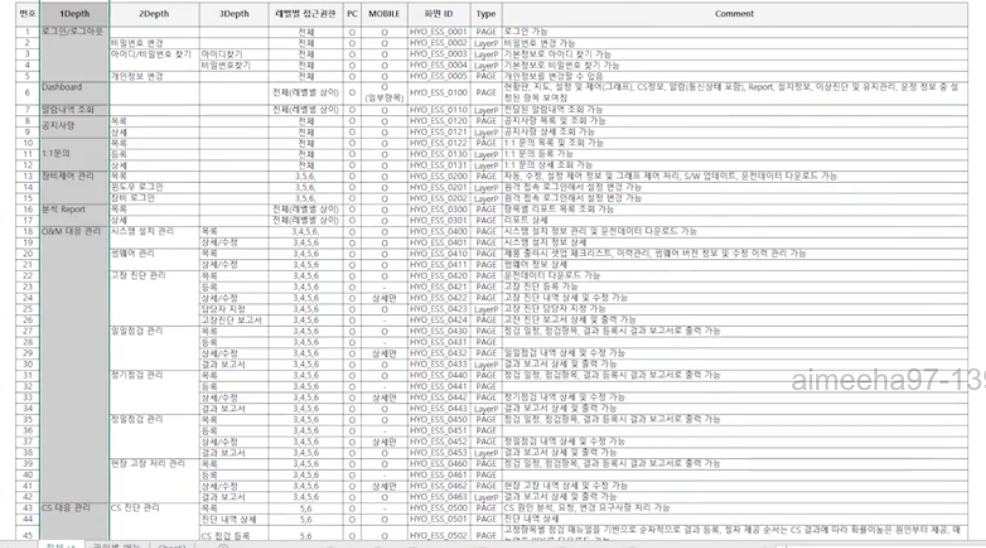 - IA: 엑셀로 만들어진 문서를 스토리보드 앞쪽에 넣어준다. 약속된 산출물에 대한 핏을 공유한다.