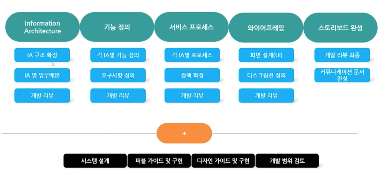 - 또한 IA, 서비스 프로세스 등이 먼저 정의된 이후에 와이어프레임과 스토리보드를 작성할 수 있다.