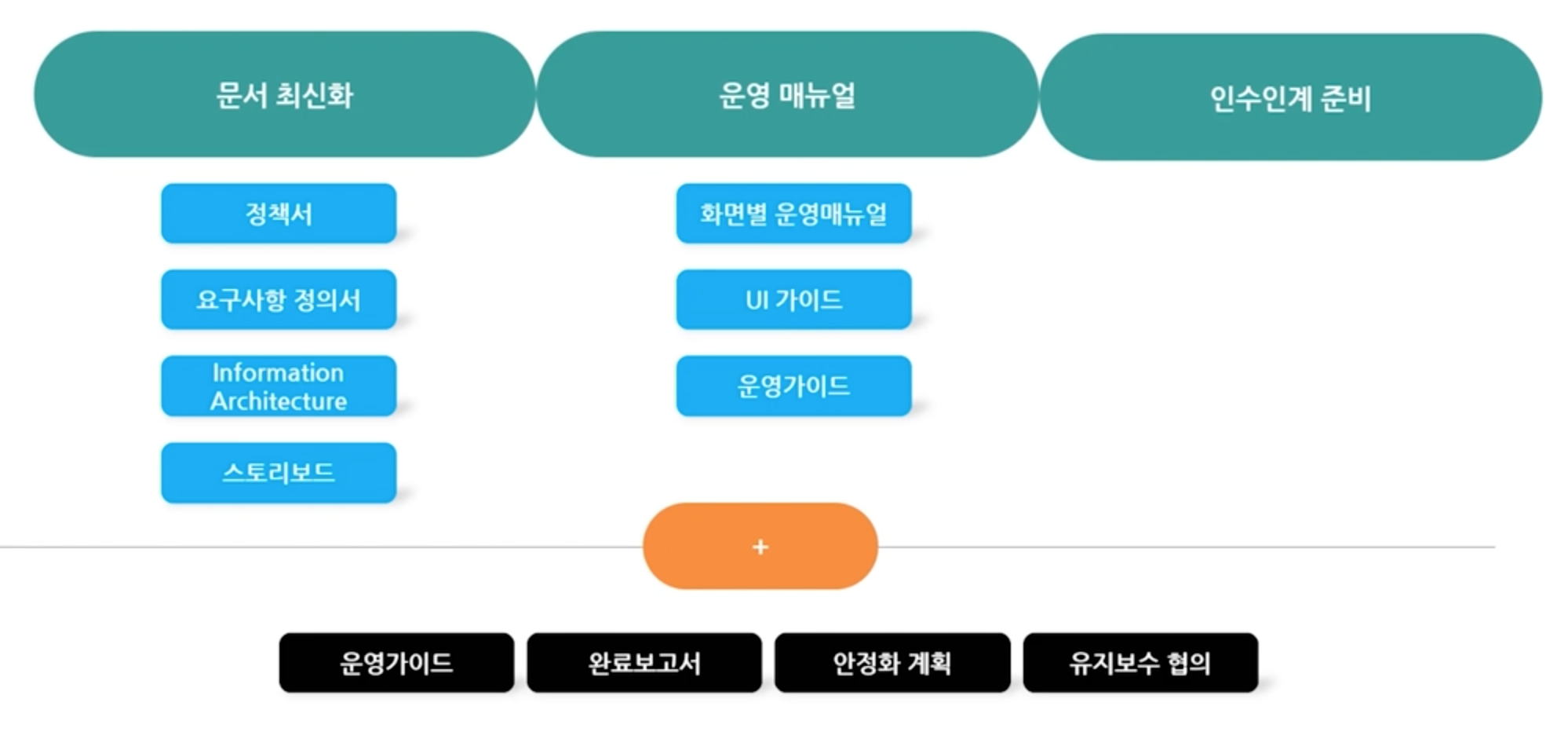 - 규모가 큰 프로젝트의 경우 프로젝트 검수 및 종료 단계에서 다시 한번 산출물에 대한 최종 검수 및 현행화 작업을 거친다.