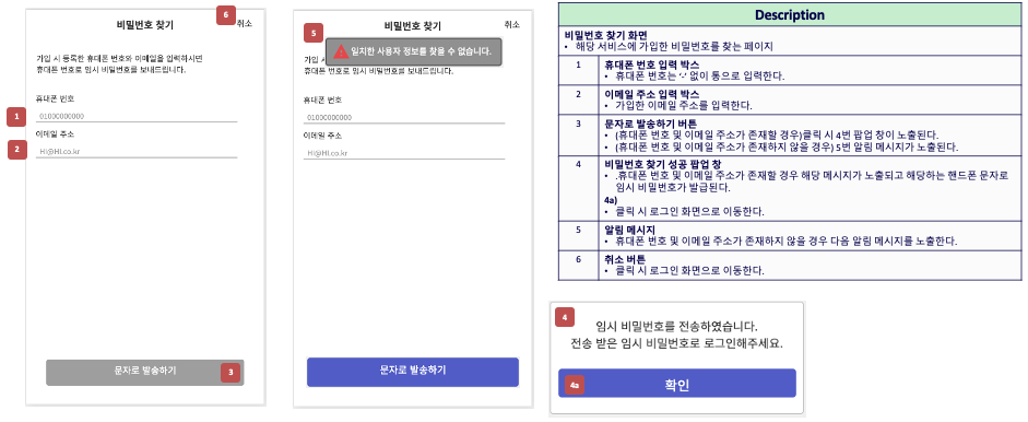 다음은 사용자 정보 불일치 및 형식 불일치에 따른 UI다.