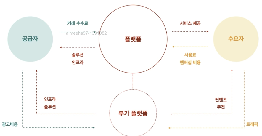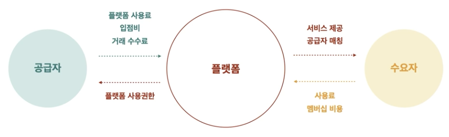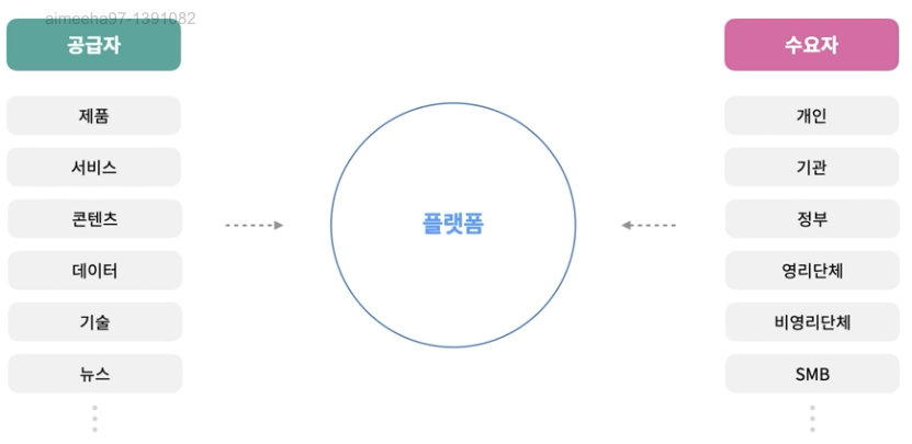 - 생태계를 구축하고 수요자와 공급자 간의 거래를 촉진하여 특정 가치를 포착하여 수익을 창출하는 비즈니스 모델