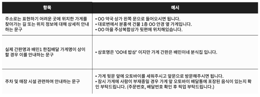 - 주소지 정보 외에 가게를 찾는 정보를 안내하는 문구 입력 기능이 있었으나, 고객센터를 통해서만 입력이 가능했음